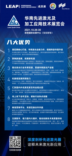 2021年华南先进激光及加工应用技术展览会将覆盖激光加工、先进激光器、光学检测等展示范围,多方位展现激光这一现代化技术在医疗器械加工领域中的应用解决方案。展会还将携手Vision China(深圳),提供更多质量控制与检测技术,助力激光在医疗领域应用的延伸。双展联动,同期同地举办,与行业优质企业同行,整合顶层优势资源,10月28日-30日,我们将在深圳国际会展中心(宝安新馆)9号馆打造一场更新的激光加工与各领域跨界合作新平台!